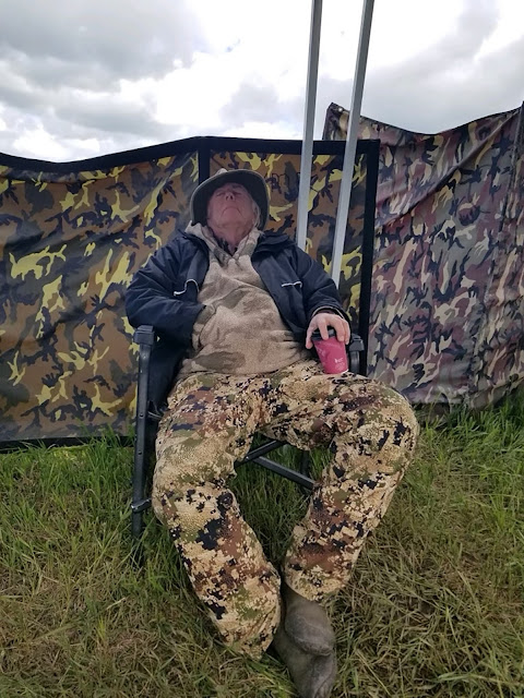 Ret. Island – Out right of the blind, makes a spinning move, turns left and gets to the island and his bird.